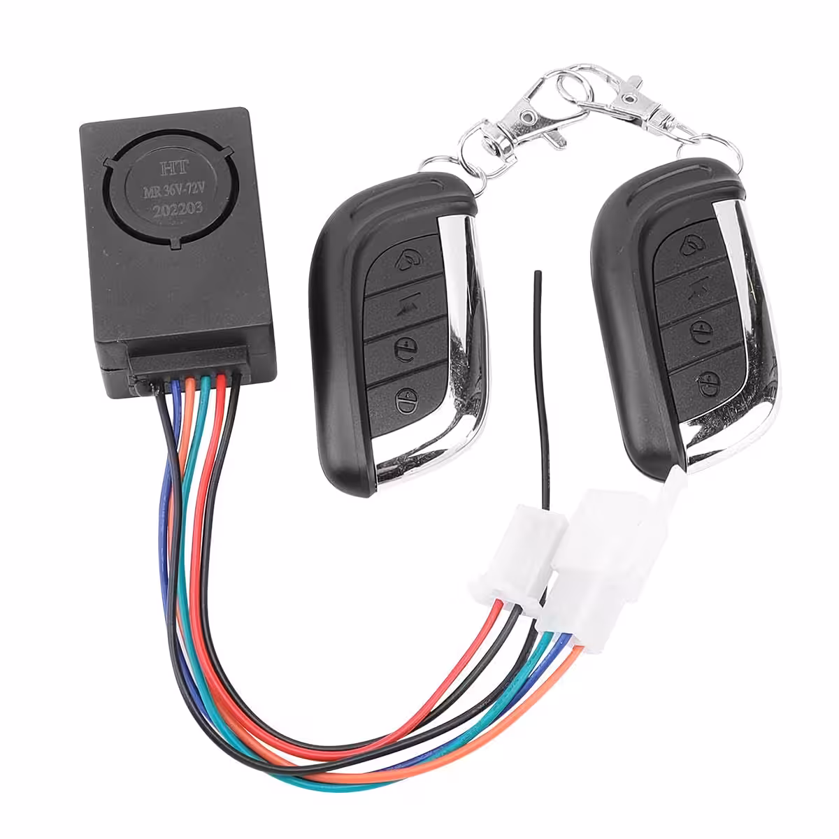 Inteligentný ochranný systém pre elektrické kolobežky, bicykle a skútre 36V-72V. Alarm vydáva silný zvukový signál a disponuje diaľkovým ovládaním pre aktiváciu, deaktiváciu a rýchlu lokalizáciu vozidla.
