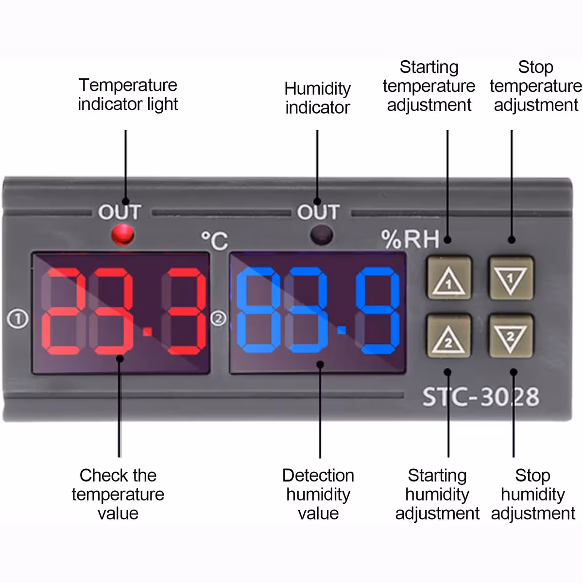 Digitálny Regulátor Teploty a Vlhkosti STC-3028 – Termostat + Hygrostat 220V
