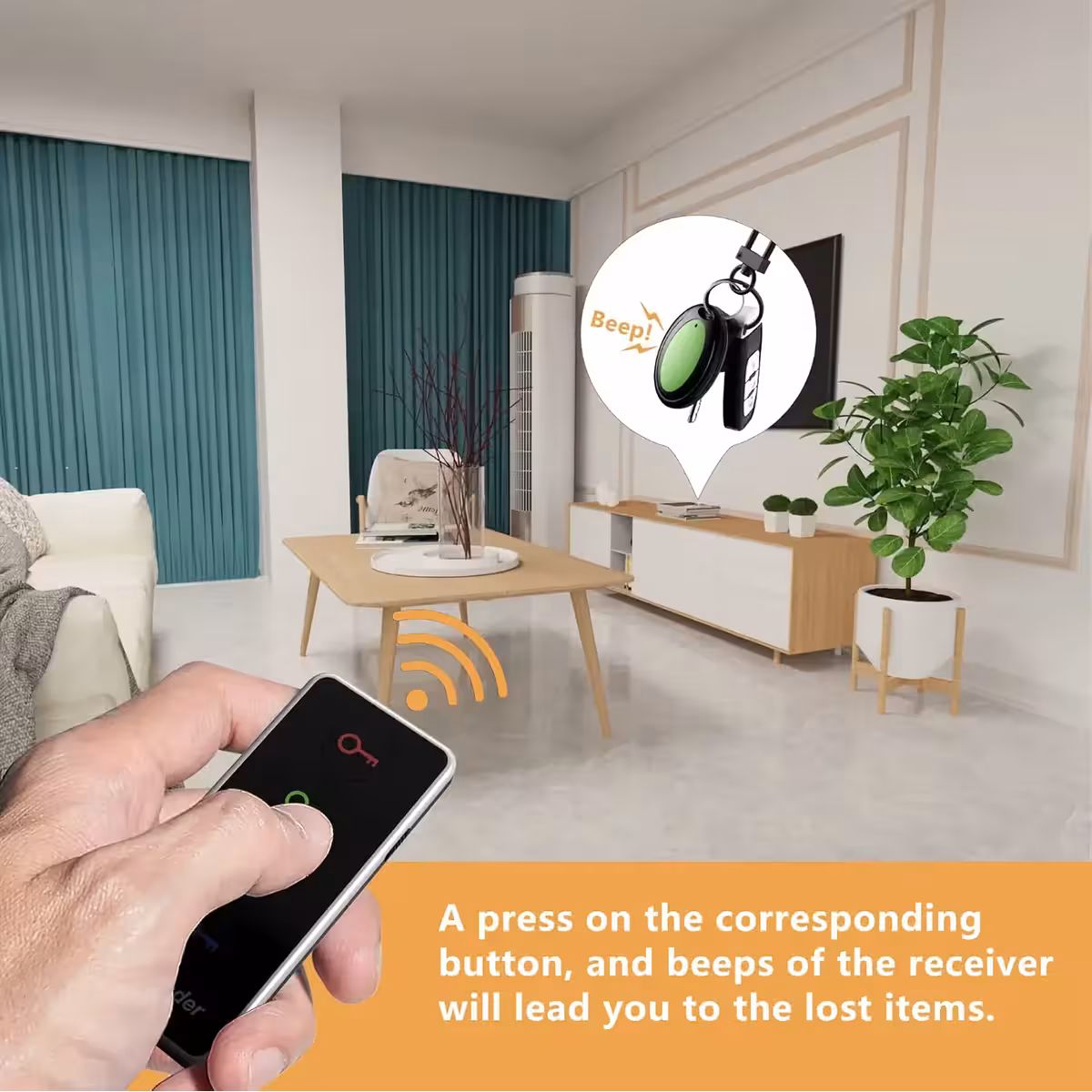 Toto zariadenie zjednodušuje lokalizáciu osobných predmetov pomocou diaľkového ovládača a prijímača. Nepotrebuje aplikáciu v telefóne.