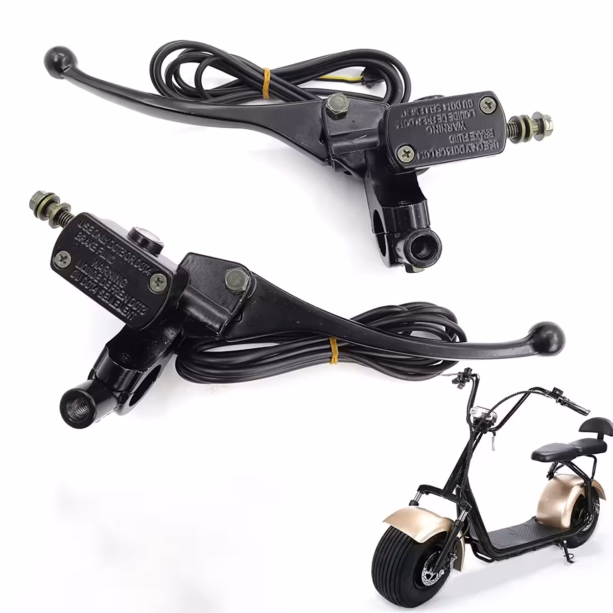 Hydraulická brzdová páčka kompatibilná s akýmkoľvek elektrickým skúterom so závitom M8, vrátane Citycoco a Harley. K dispozícii pre ľavú alebo pravú stranu.