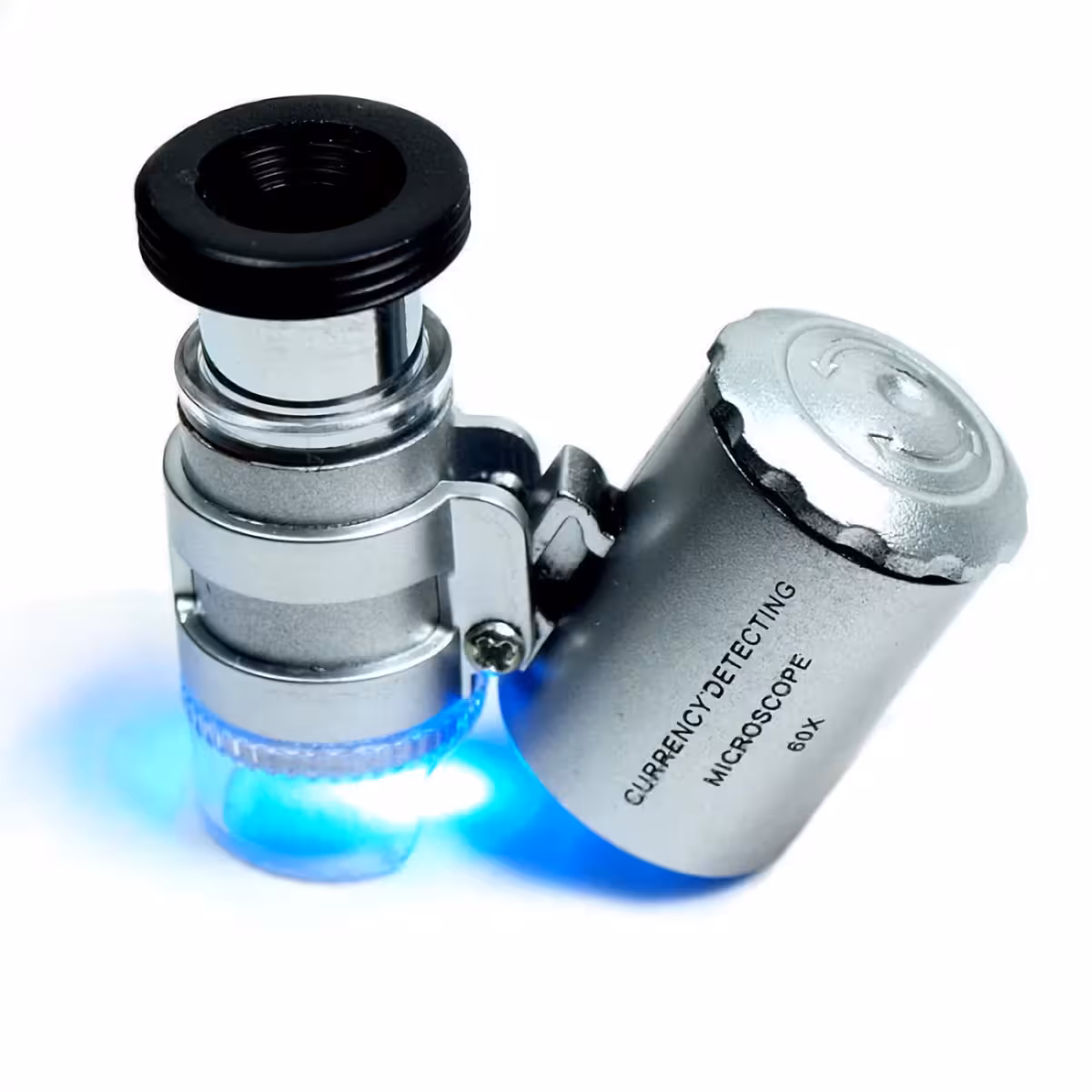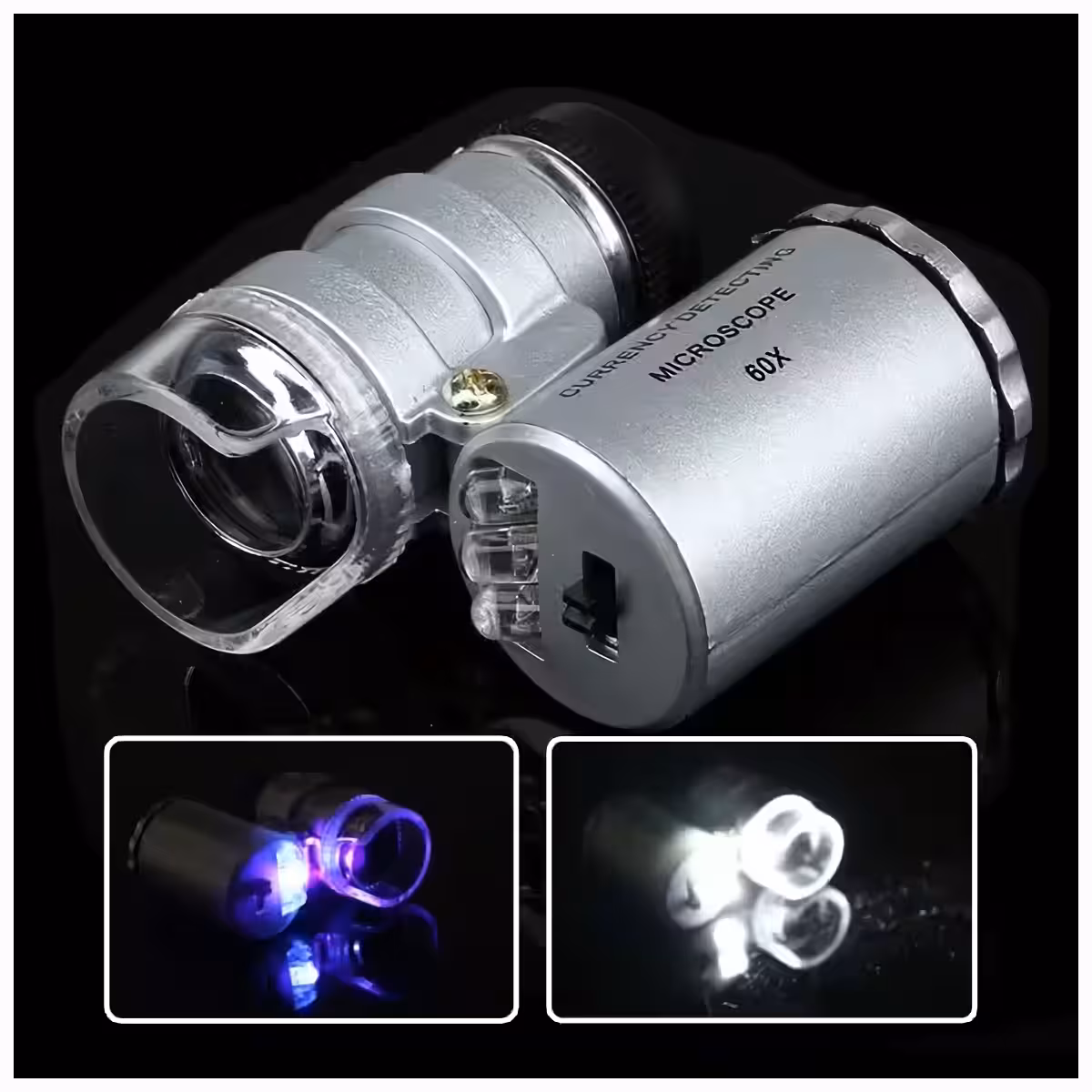 Veľký lupa mikroskop 60x s LED – prístroj na kontrolu peňazí, pre klenotníkov, hodinárov, UV lampa