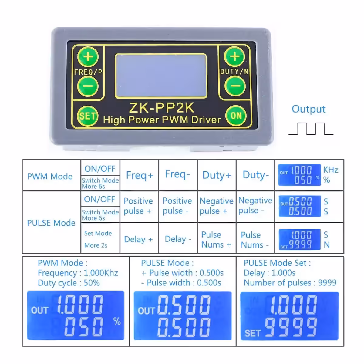 Vybavené najmodernejšou technológiou, toto zariadenie prináša bezprecedentné funkcie, vďaka čomu je nevyhnutným nástrojom pre rôzne aplikácie, ako sú experimentálny vývoj, riadenie motorov, prepojenie s mikrokontrolérmi, regulácia jasu a regulácia rýchlosti.