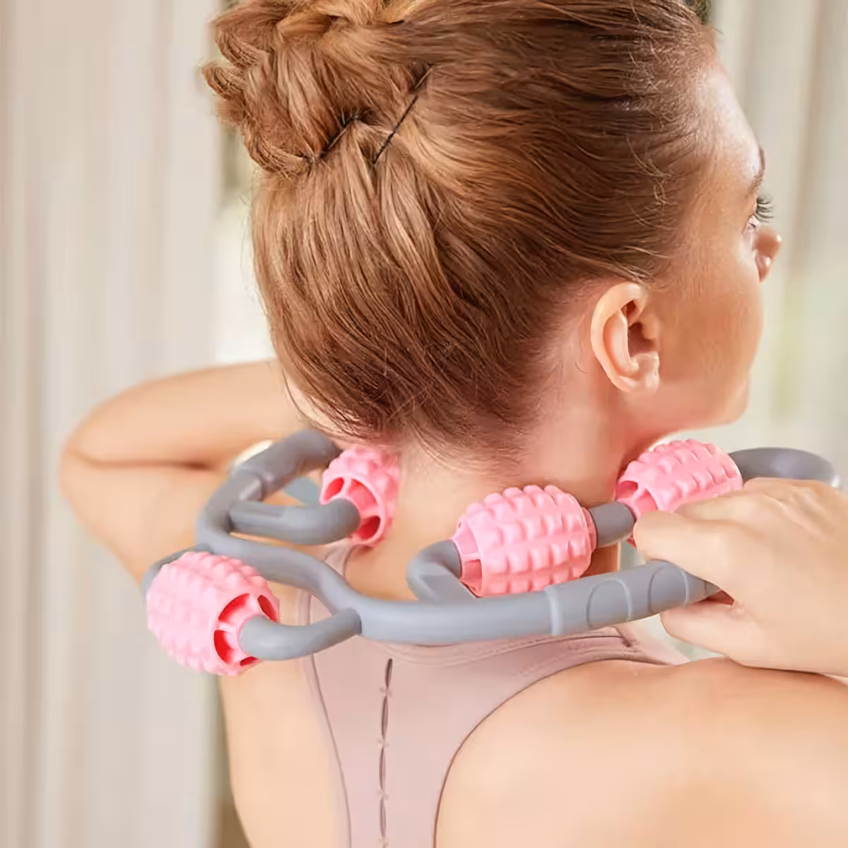 Ručný Masážny Prístroj na Svaly s 5 Valčekmi – Anticelulitídny, Relaxácia Tela, Krčná Chrbtica, Nohy, Pätky
