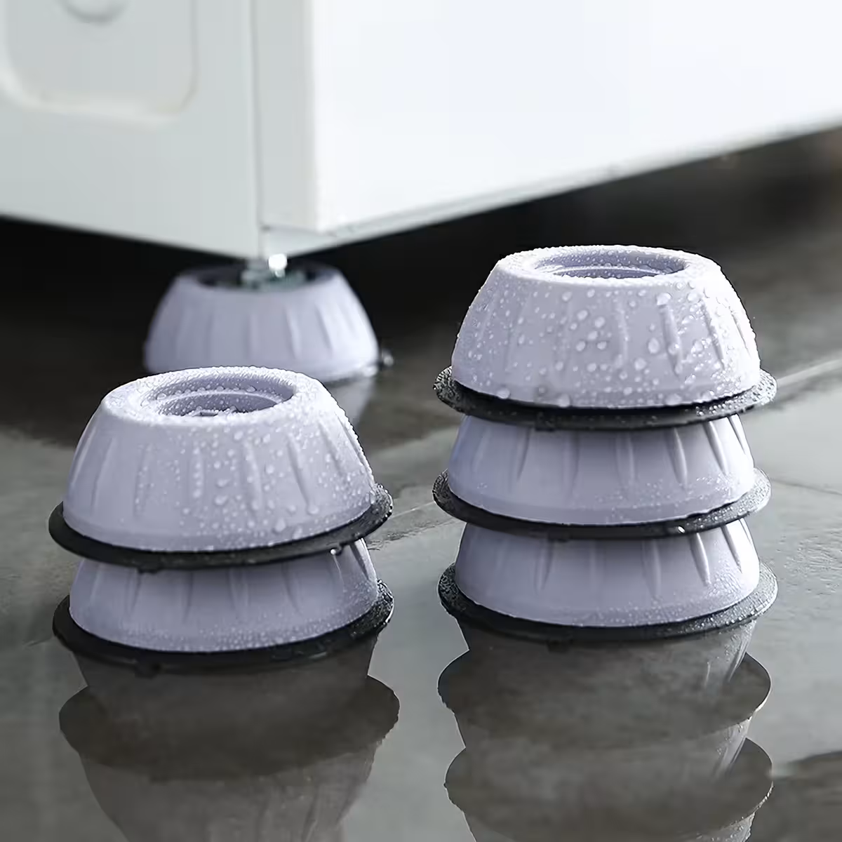 Tieto proti-vibračné nožičky z termoplastickej gumy (TPR) sú univerzálne doplnky, ideálne na zníženie hluku a vibrácií spôsobených práčkami a sušičkami. Poskytujú stabilitu zariadeniu a chránia podlahu pred poškriabaním.