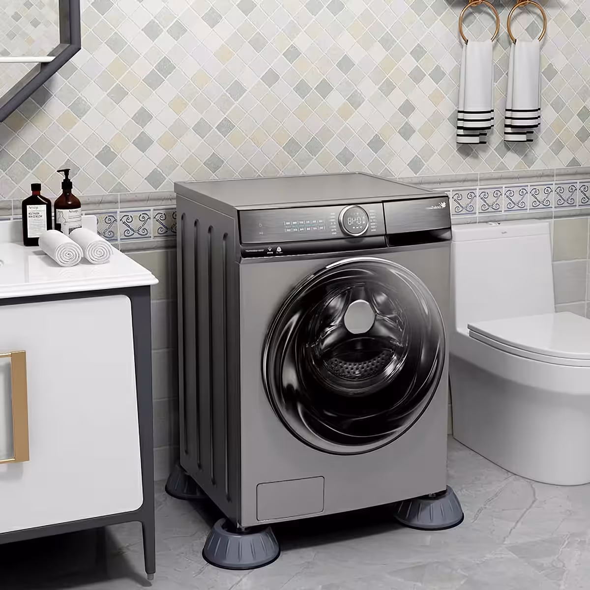 Tieto proti-vibračné nožičky pre práčku sú ideálnym riešením pre tiché a chránené prostredie, predlžujúc životnosť zariadenia a podlahy.