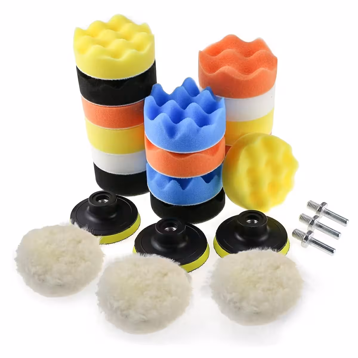 Táto kompletná sada leštiacich hubiek a kotúčov na auto je navrhnutá na leštenie a údržbu lakovaných povrchov, ako sú karosérie áut, plastové diely, kov alebo sklo. Môže sa používať s akoukoľvek vŕtačkou alebo leštiacim strojom vďaka 3 priloženým adaptérom.