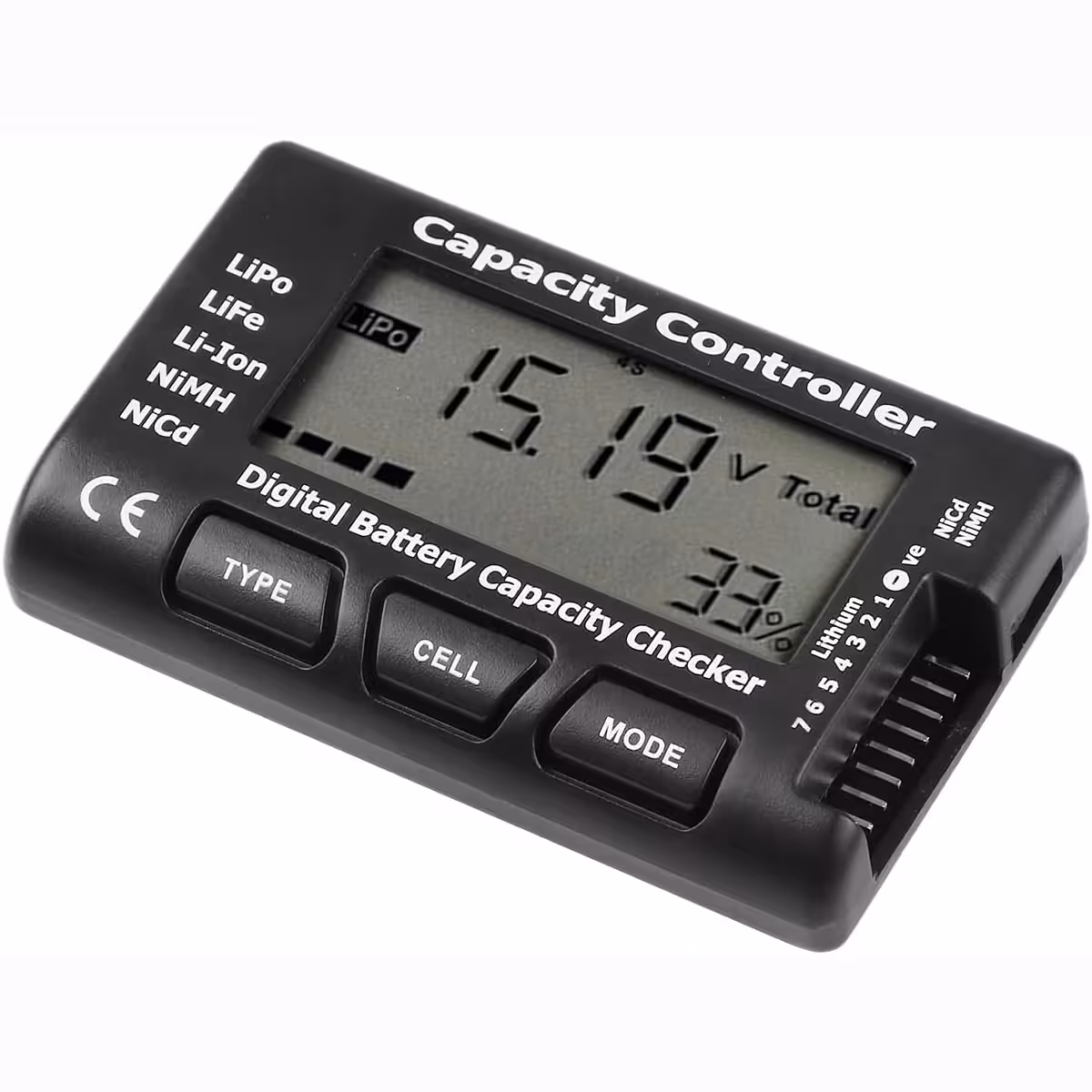 Tento tester kapacity batérií Li-Ion, LiPo, LiFe, NiMH a NiCd je kompatibilný s akumulátormi 2-7S a poskytuje presné merania napätia a zostávajúcej kapacity. Ideálny pre RC nadšencov, technikov alebo používateľov, ktorí chcú monitorovať stav batérií s maximálnou presnosťou.
