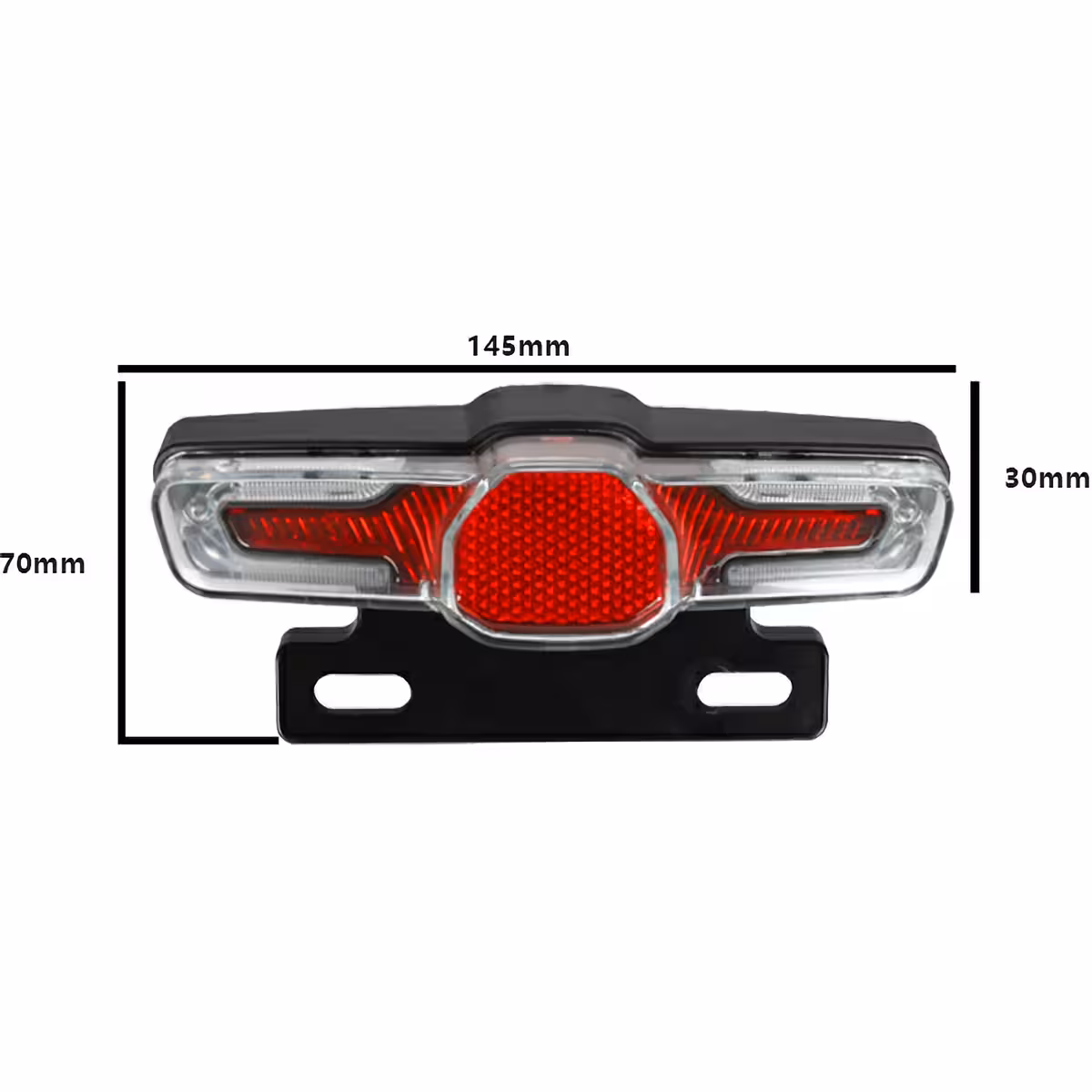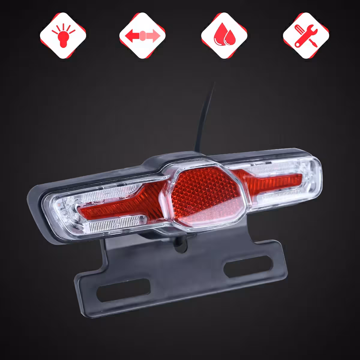 Multifunkčné zadné LED svetlo je ideálne pre elektrické kolobežky, elektrické bicykle a elektrické skútre. Poskytuje funkcie signalizácie doľava/doprava, polohové svetlo pre noc a brzdové svetlo.